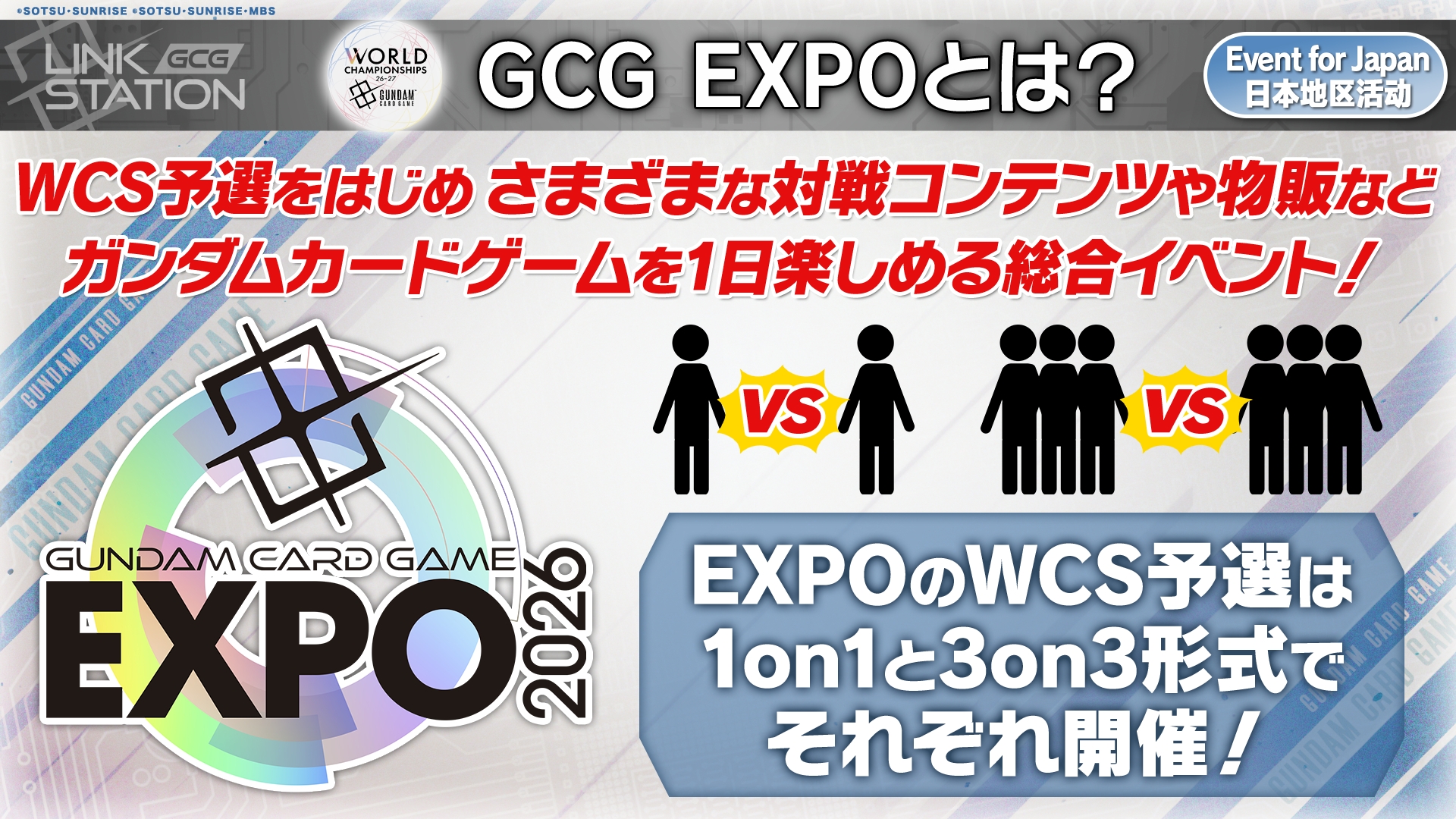 「GCG EXPO」はガンダムカードゲームを一日中楽しめる総合イベントです。