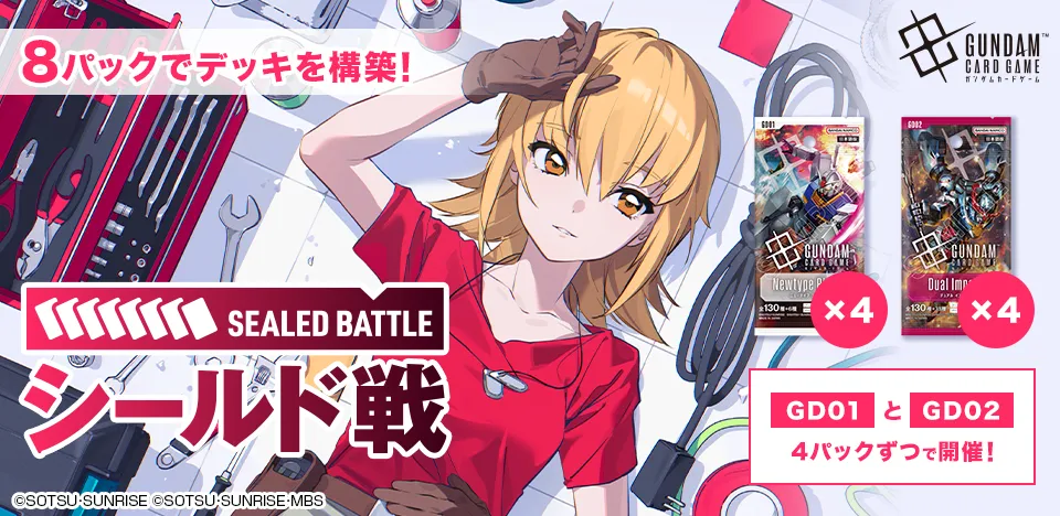 『ブースターパック Newtype Rising [GD01] 』 『ブースターパック Dual Impact [GD02] 』を4パックずつ開けて、出てきたカードで戦いましょう!