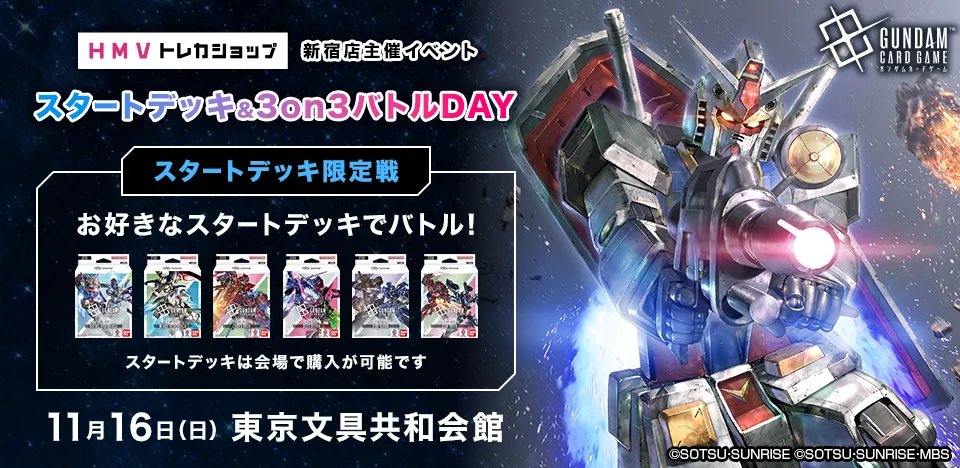 本大会は、お手持ちのスタートデッキもしくは会場で購入したスタートデッキをそのまま使用してバトルを行います。