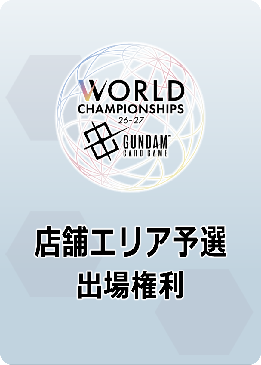 全国の「ガンダムカードゲームエキスパートショップ」にて開催する、「店舗エリア予選」の出場権利を獲得できる大会です。
