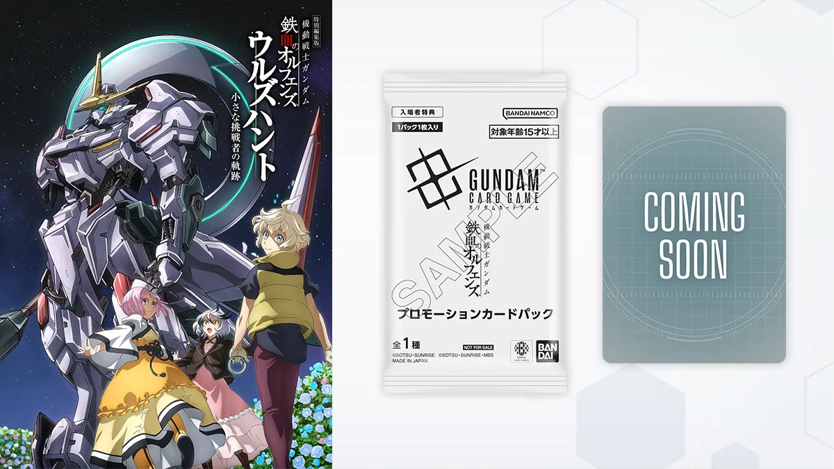 10月31日(金)より公開の『機動戦士ガンダム 鉄血のオルフェンズ ウルズハント -小さな挑戦者の軌跡-』・同時上映『機動戦士ガンダム 鉄血のオルフェンズ』10周年記念新作短編「幕間の楔」の入場者特典 第1弾として『ガンダムカードゲーム』のプロモーションカードが登場!さらに、伊藤悠氏描き下ろし漫画入りの特別冊子や、千葉道徳氏描き下ろしのミニイラストカードがもらえる!入場者特典 第1弾